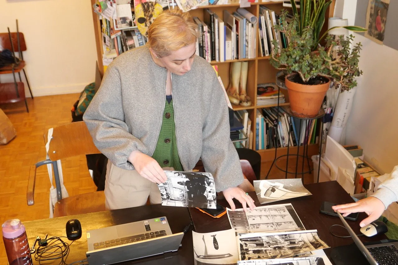 Foto van Zeina Al-Qahwaji, designer van de website, tijdens de selectie van de beelden, 2025. Fotograaf Dorothée van den Berghe.
