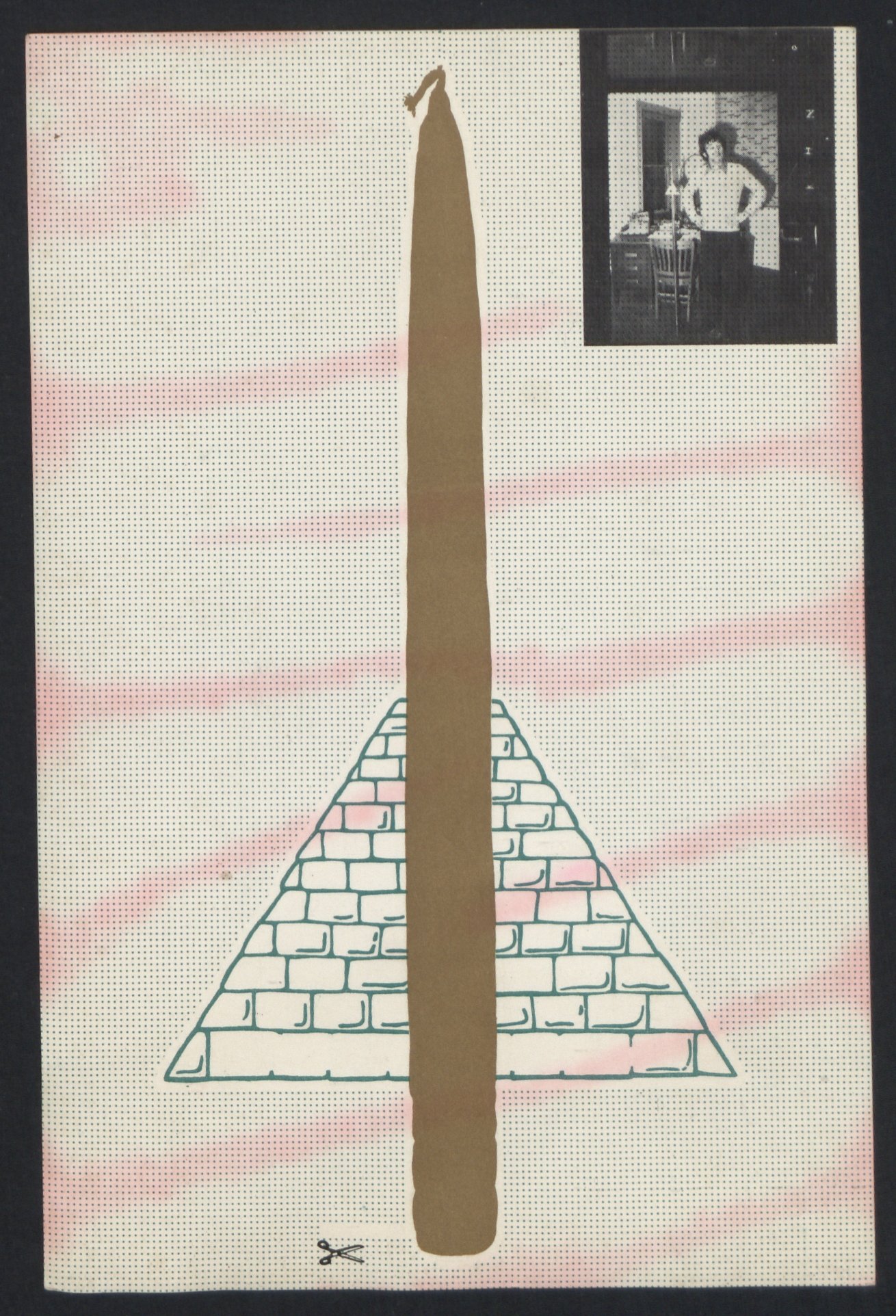 “Following the guest lectures at The Cooper Union, Roland Van den Berghe also accepted invitations from a number of people outside that institution. There, he placed a golden candle with four paper wings, on which the pyramid was drawn, on a tall candlestick. The agreement was that they would notify him if anything happened to the object, such as the candle being lit. After two years, Stefan Eins reported that his candle had melted due to the heat of his gas heater. This artwork was exhibited alongside “Study for the Great Seal” in 1978 at Galerie ‘A’ in Amsterdam; in this participatory project, similar golden candles could be lit on a candlestick-mounted pyramid.”
