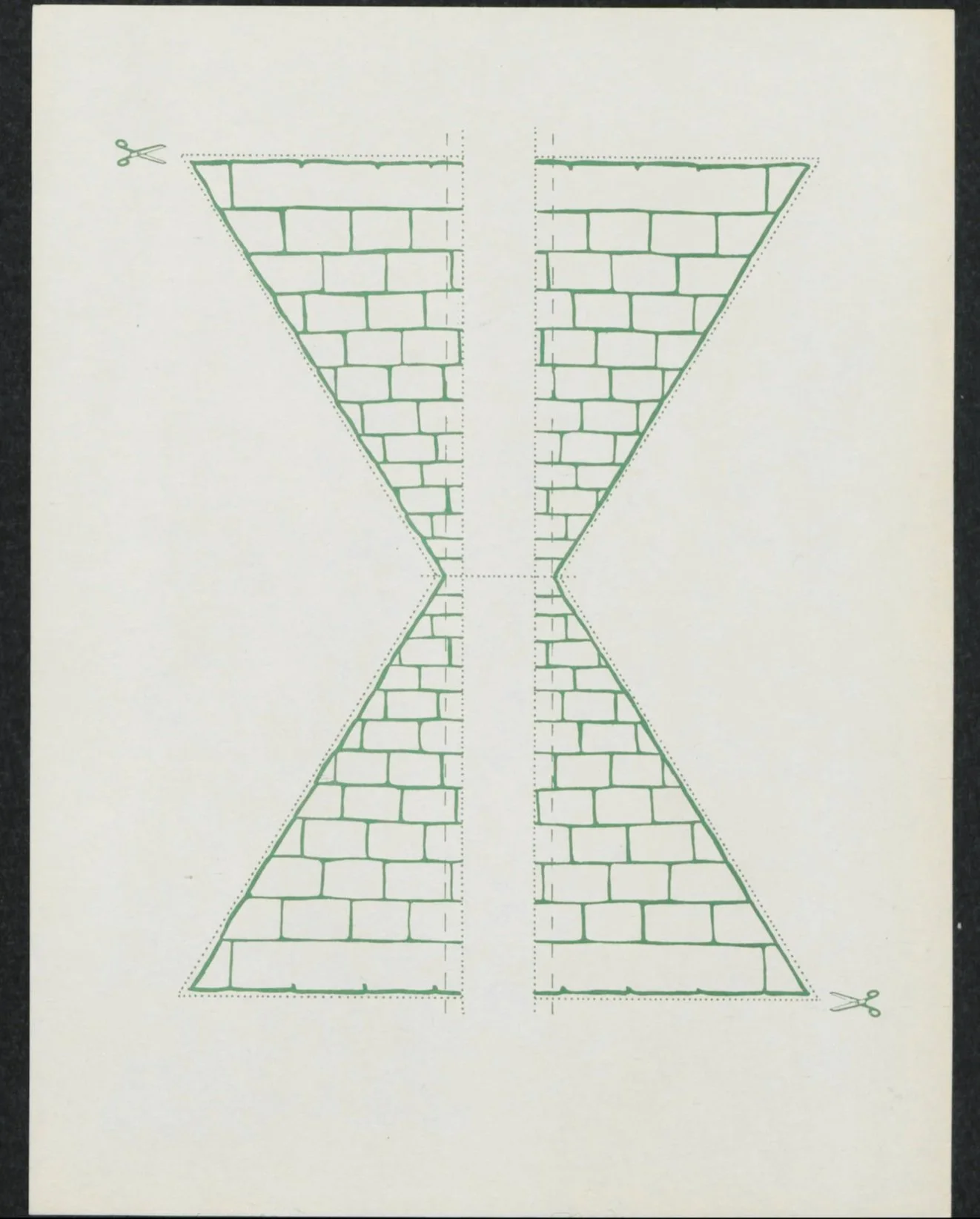 “Cooper Union was a participatory project at the School of Arts and Architecture that took place from February 26 to April 12, 1975. For Roland Van den Berghe, giving guest lectures was a prelude to a subsequent idea: some 50 students from the ‘Advanced Printmaking Workshop’ and “Sculpting,” were given the opportunity to invite the artist into their living spaces. Eighteen guests attended; during the visits, the artist always brought the same educational props, which functioned within the context of the lecture. About ten people went on to improvise, playing with the provided materials. This led to the collaborative creation of small sculptures.”